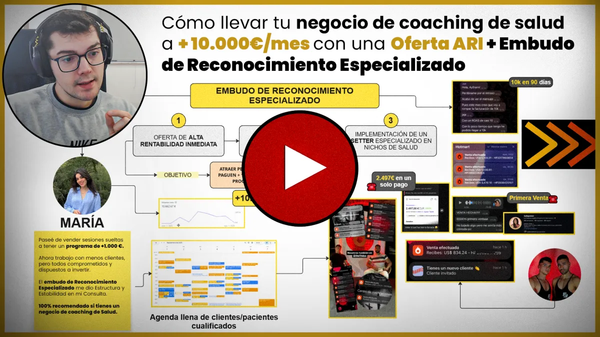 Nuestra especialidad es ayudar a dueños de negocio de coaching de salud (nutricionistas, entrenadores, psicólogos, fisioterapeutas...) a romper sus techos de facturación y escalar con sistemas que realmente funcionan.