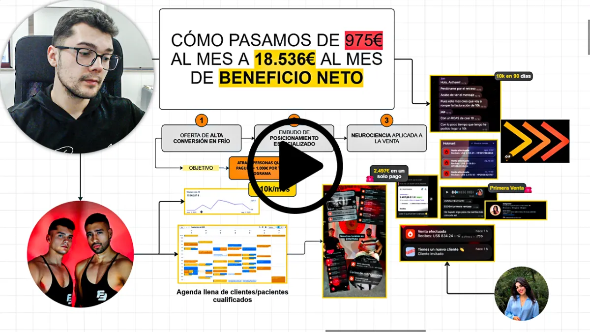 Junto con su socio Juan Diego, logró escalar Thefitdos desde cero hasta superar los 22.000€ mensuales de facturación recurrente, con más del 70% de beneficio neto y el 90% del negocio delegado. Lo hicieron sin lanzamientos, sin contenido diario y sin perseguir prospectos. Lo lograron construyendo un embudo sólido, automatizado y especializándose en ventas de alto ticket.